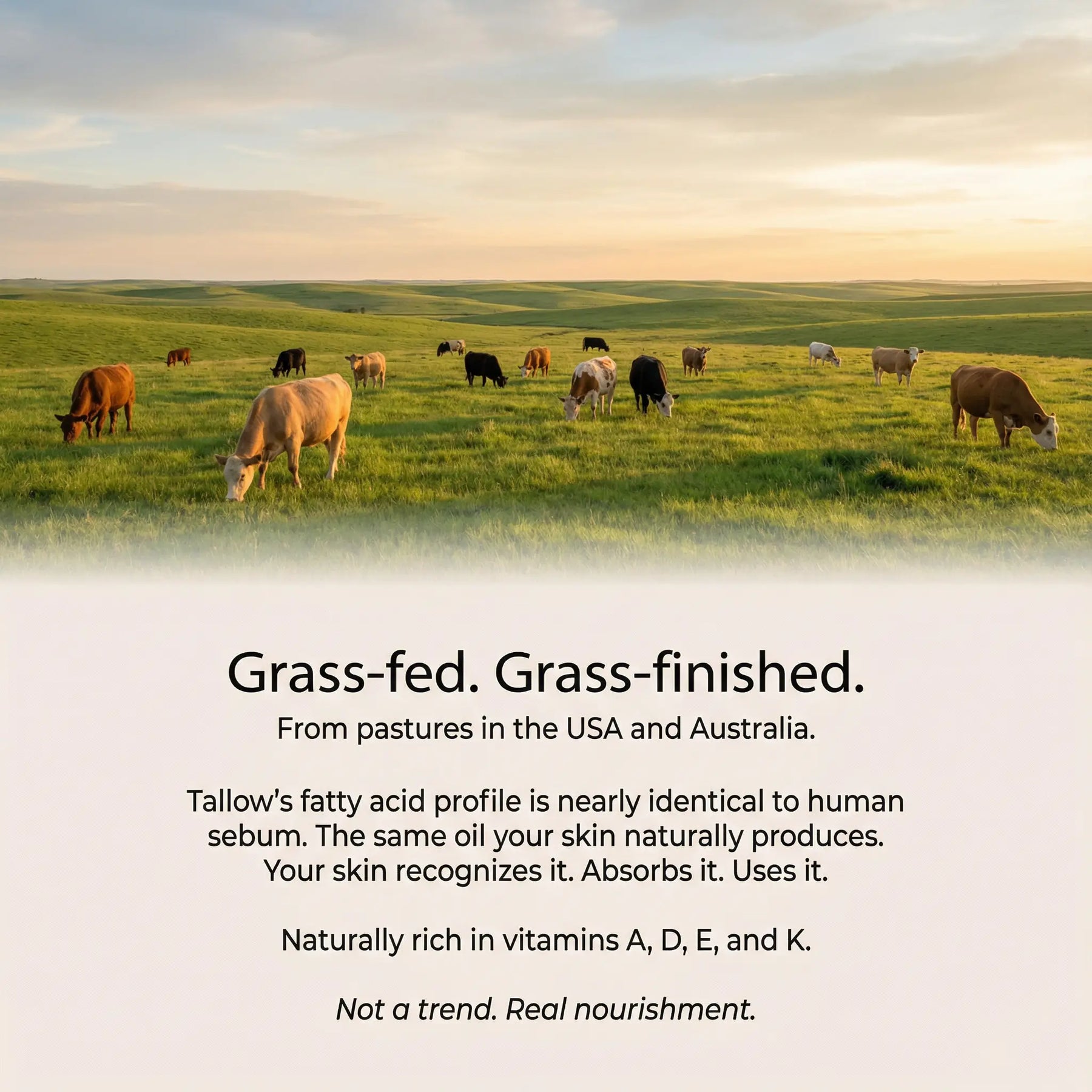 ● Grass-Fed Beef Tallow – absorbs instantly, delivers nutrients deep