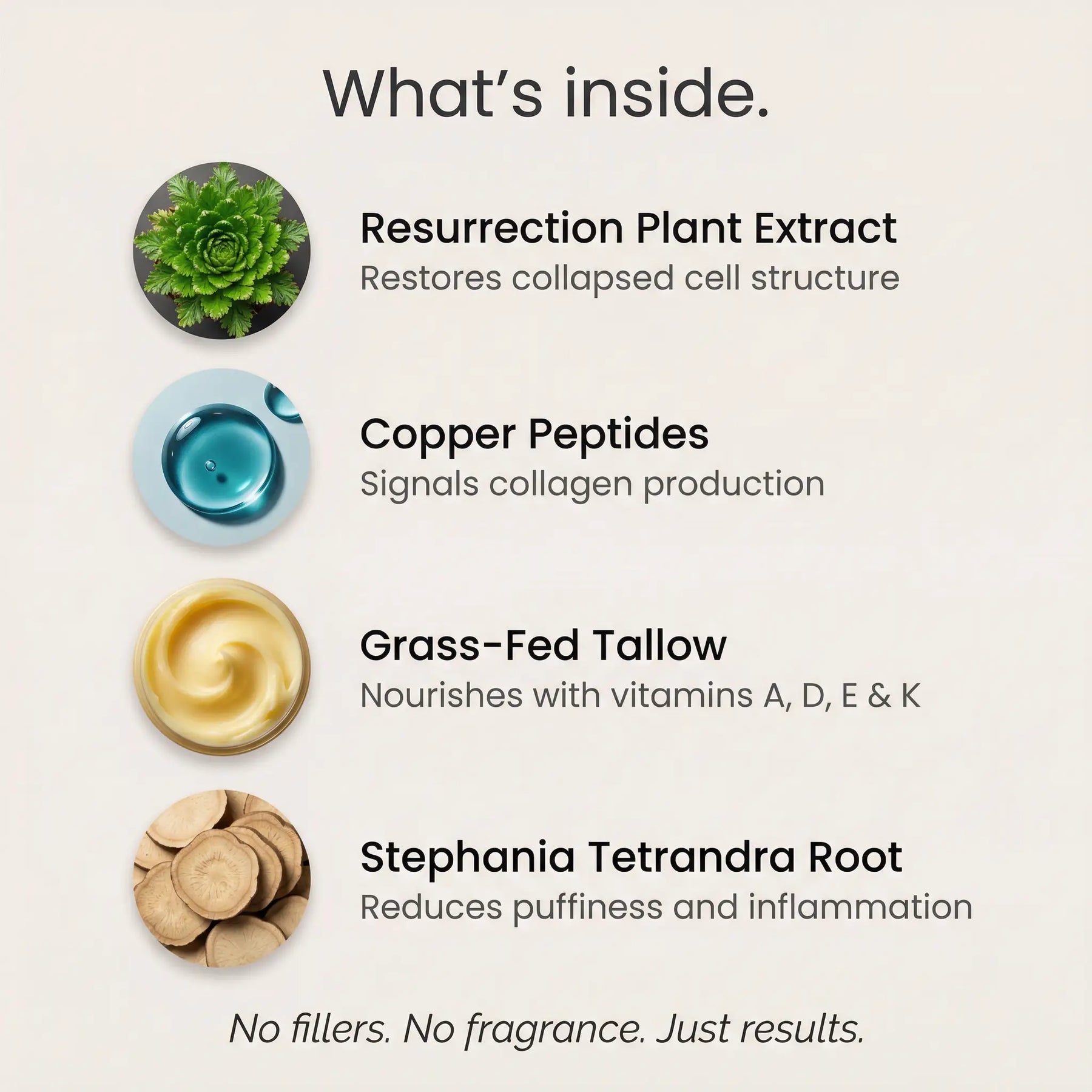 No fillers. No fragrance. No parabens. No retinol.